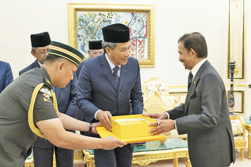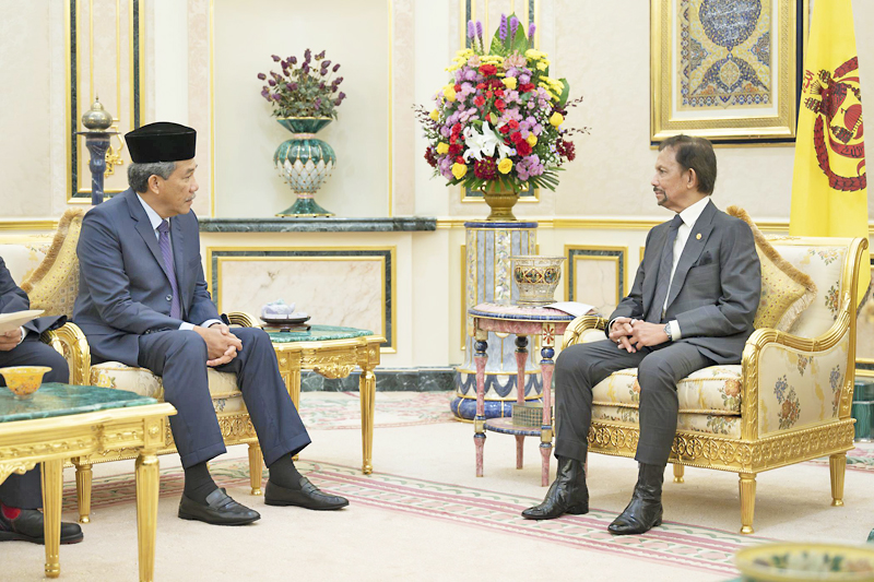 BANDAR SERI BEGAWAN, 15 FEB – Kebawah Duli Yang Maha Mulia Paduka Seri Baginda Sultan Haji Hassanal Bolkiah Mu’izzaddin Waddaulah, Sultan dan Yang Di-Pertuan Negara Brunei Darussalam petang tadi berkenan menerima mengadap Menteri Luar Negeri Malaysia, Tuan Yang Terutama Dato’ Seri Utama Haji Mohamad bin Haji Hasan yang mengadakan lawatan pengenalan ke negara ini.