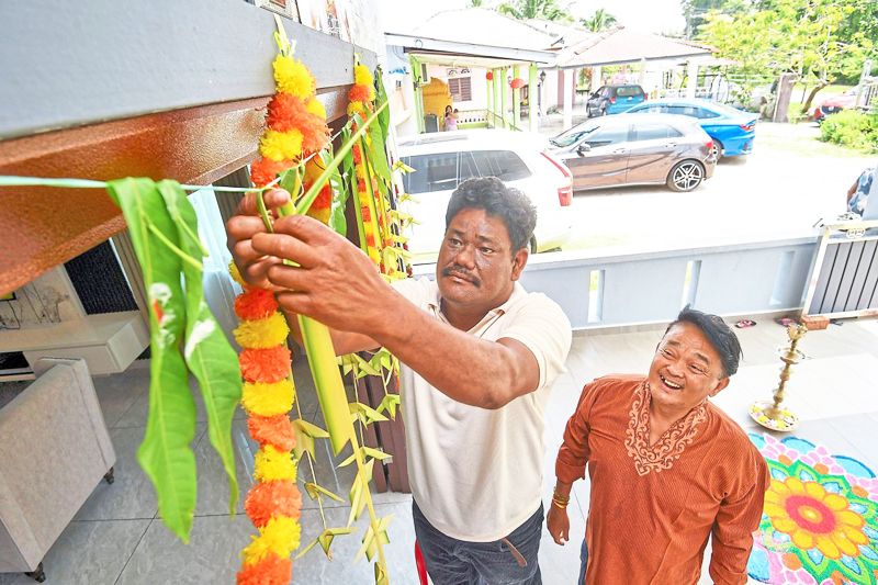 Di ruang tamu, abangnya, pesara S. Gunasegaran, 61, dan abang iparnya, ahli perniagaan Sundar Veeramalai, 52, sedang memasang kalungan thoranam (diperbuat daripada daun mangga segar) di pintu masuk hadapan.