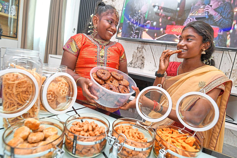 Santhi juga bersedia untuk membuat snek tradisional kegemaran keluarganya untuk musim perayaan ini, termasuk achi muruku, muruku, nei urundai dan chippi. Terakhir dalam senarai ialah kallu urundai, makanan ringan manis dari India Selatan yang diterjemahkan kepada ‘bola batu.’
