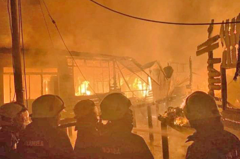 BANDAR SERI BEGAWAN, 7 JUN – Tiga buah rumah ranap dijilat api manakala dua lagi rumah berdekatan rosak akibat bahang api dalam kejadian kebakaran rumah di Kampung Tamoi Tengah, baru-baru ini.