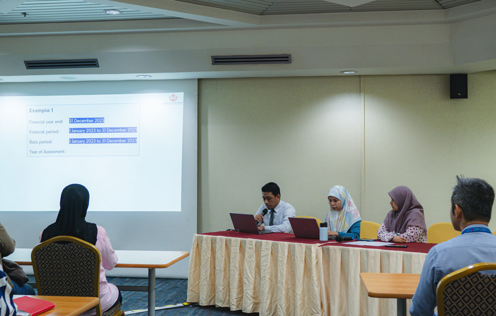 Sesi pemberigaan berlangsung di Bilik Serbaguna 2, Tingkat 3, Island Block, kementerian berkenaan antara lain menekankan kepentingan pematuhan terhadap obligasi dan tanggungjawab cukai pendapatan korporat.