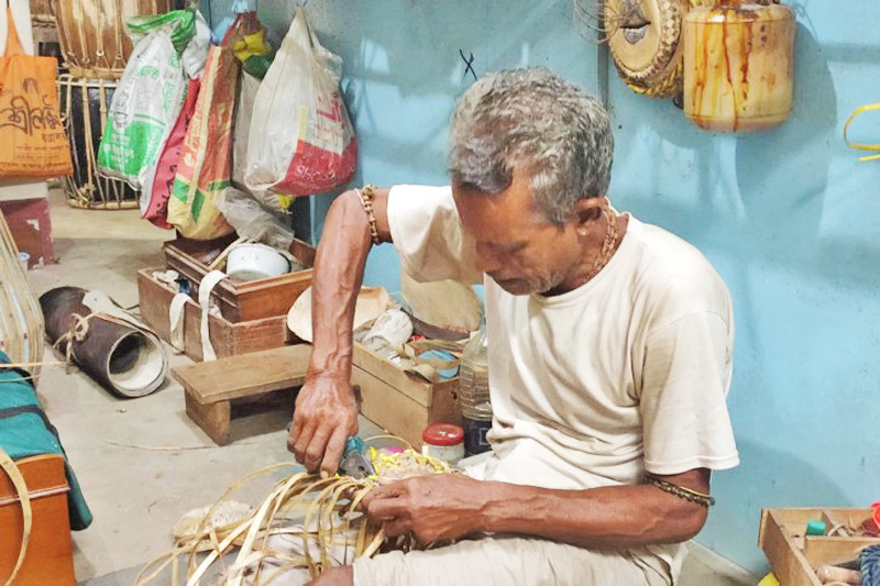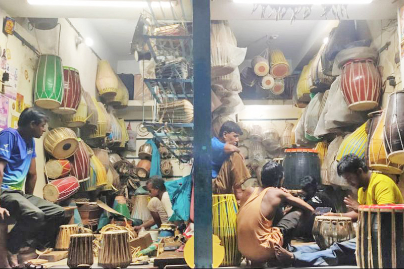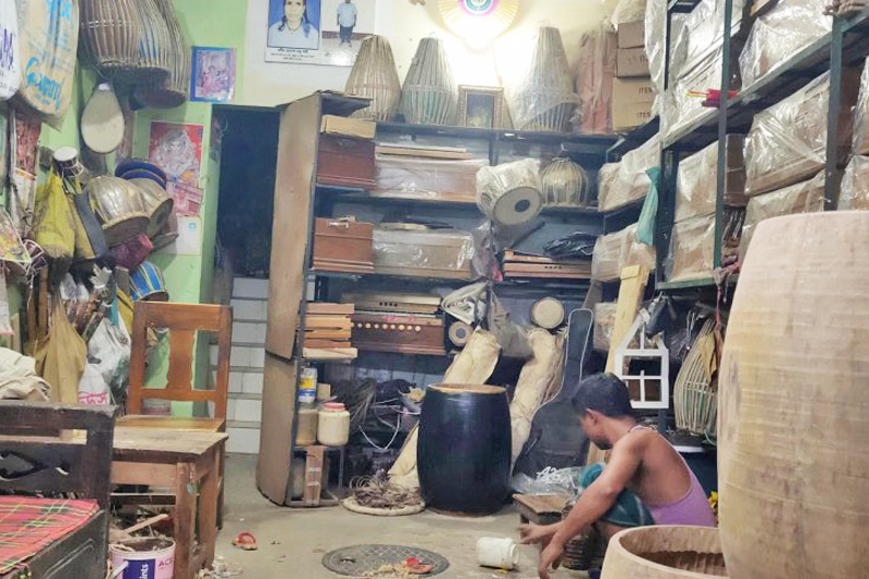Duduk di satu sudut ialah Soilendra Chandra Das, 79 tahun, seorang tukang mahir yang telah menghabiskan hidupnya membuat dhak, dhol, khol, tabla dan harmonium. Kedainya, yang dipenuhi dengan peralatan yang diperbuat daripada kulit lembu dan kambing, kini diiktiraf sebagai era yang pudar tentang profesion yang pernah berkembang maju itu.