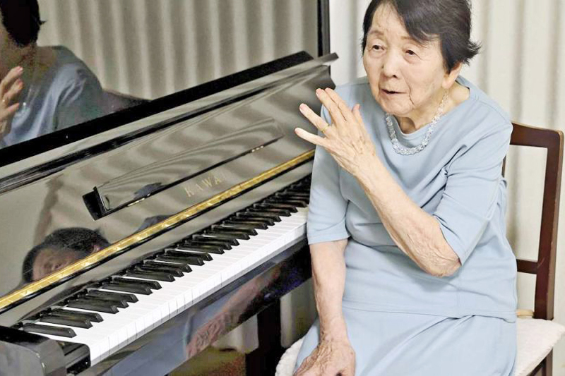 Kini, pada usia 98 tahun, Kinashi masih mengamalkan rutin harian dua jam di depan piano.