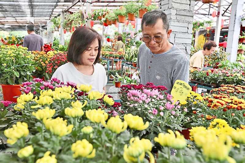 Sementara itu, pasangan ibu dan anak, Tan Lai Peng dan Tan Pei San juga sedang mencari tumbuhan bertuah untuk menghiasi rumah mereka sempena Tahun Baharu Cina.