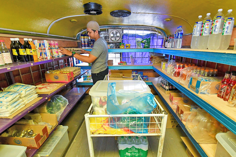 “Asalnya ia adalah sebuah bas sekolah jenis Ford yang telah uzur dan tidak dapat digunakan lagi. Jadi kami sependapat untuk ubah suainya menjadi kedai runcit mini daripada membiarkan ia terbiar begitu sahaja.
