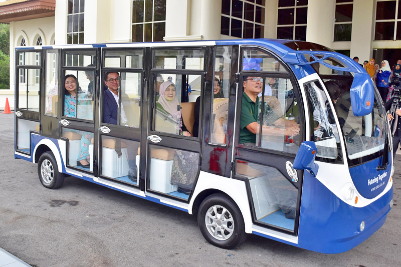 Beliau menambah bahawa ia adalah selaras dengan Wawasan Brunei 2035 dan SDG Kebangsaan, di mana EV itu akan membantu mengurangkan jejak karbon dalam komuniti UBD dengan mengurangkan penggunaan kenderaan persendirian untuk bergerak di sekitar kampus.Majlis diteruskan dengan pelancaran EV itu yang disempurnakan oleh Pengiran Hajah Nirmala dan diakhiri dengan jemputan khas menaiki EV berkenaan.