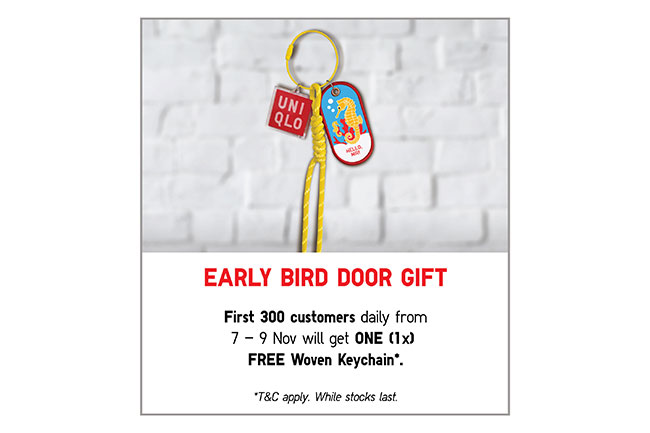 250 pelanggan pertama yang beratur setiap hari akan membawa pulang rantai kunci tenunan UNIQLO x Anatomy edisi khas. Hadiah kenangan dengan sentuhan kraftangan istimewa ini meraikan transformasi kedai UNIQLO bersama peminat fesyen ‘casual’. Stok terhad, jadi datanglah awal agar tidak kecewa!
