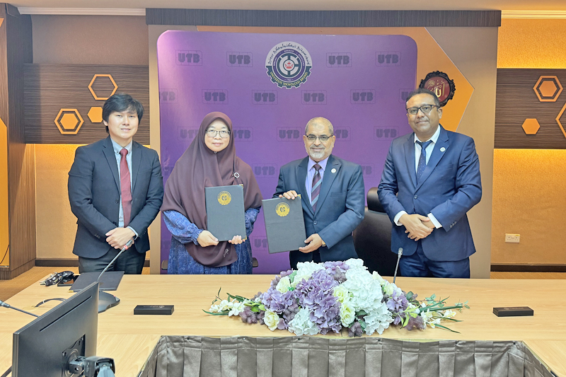 MoA itu ditandatangani oleh Dr Hajah Ena Kartina binti Haji Abdul Rahman bagi pihak UTB dan disaksikan oleh Ketua Penyelidik, Fakulti Kejuruteraan UTB, Profesor Madya Dr Law Kah Haw. Sementara itu, menandatangani mewakili HU ialah Profesor Dr Mohammed Saeed Khanbash dan disaksikan oleh Ketua Penyelidik dan Penolong Profesor, Fakulti Kejuruteraan dan Petroleum HU, Dr Samir Salem Al-Bawri.