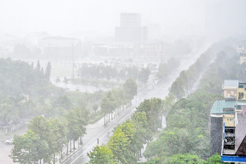 Bandar pesisir Vinh dibanjiri sejak semalam dengan jalan-jalan sunyi pada pagi tadi, kebanyakan kedai dan restoran ditutup sementara pemilik premis menahan pintu masuk menggunakan karung pasir.