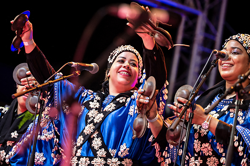 Ensembel yang kesemuanya terdiri daripada wanita itu memukau para pengunjung festival – dengan Hamzaoui menumpu pada nyanyian dan guembri, manakala empat pemuzik memainkan kastanet keluli qraqeb. Mereka bermain bersama Amazones d’Afrique, satu lagi kumpulan wanita dari Mali.