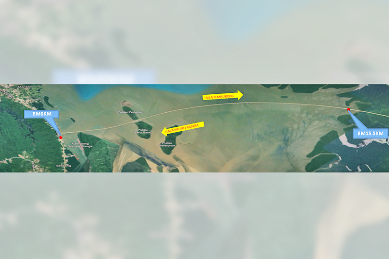 Menurut kenyataan Jabatan Kerja Raya (JKR), kerja-kerja pembersihan dilaksanakan di KM BM 15.5 sehingga KM BM 0, hala Brunei-Muara.